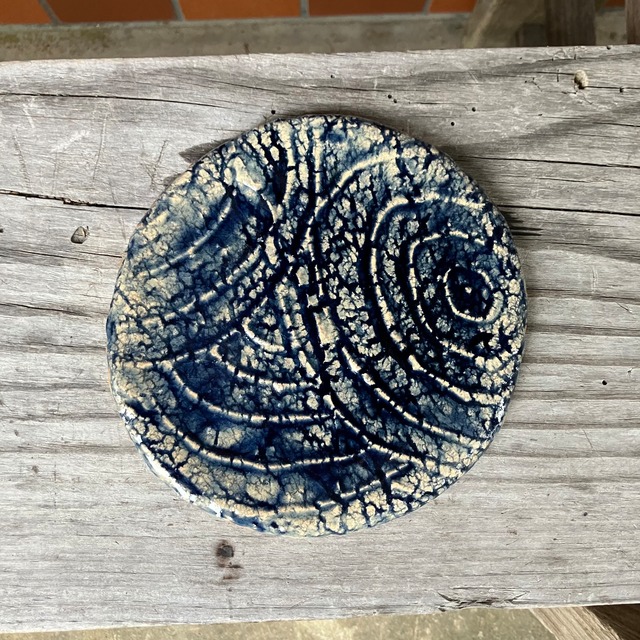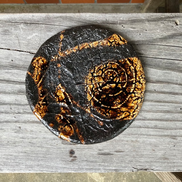黒釉・罅紋様丸皿