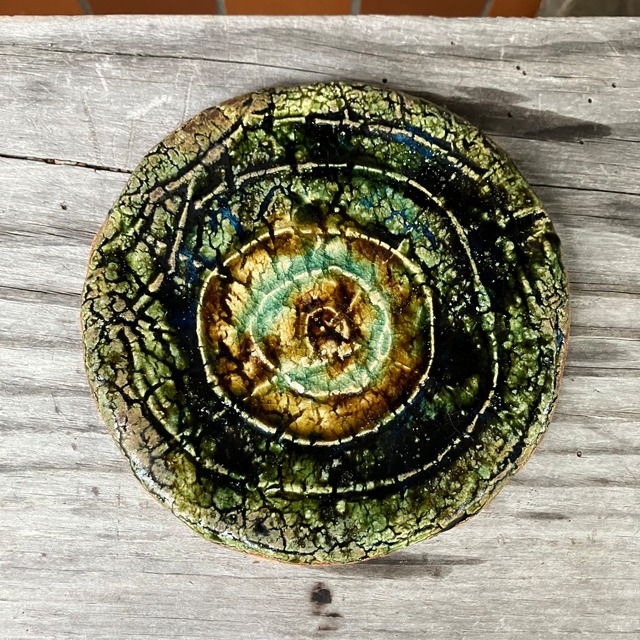 青釉・罅紋様丸皿