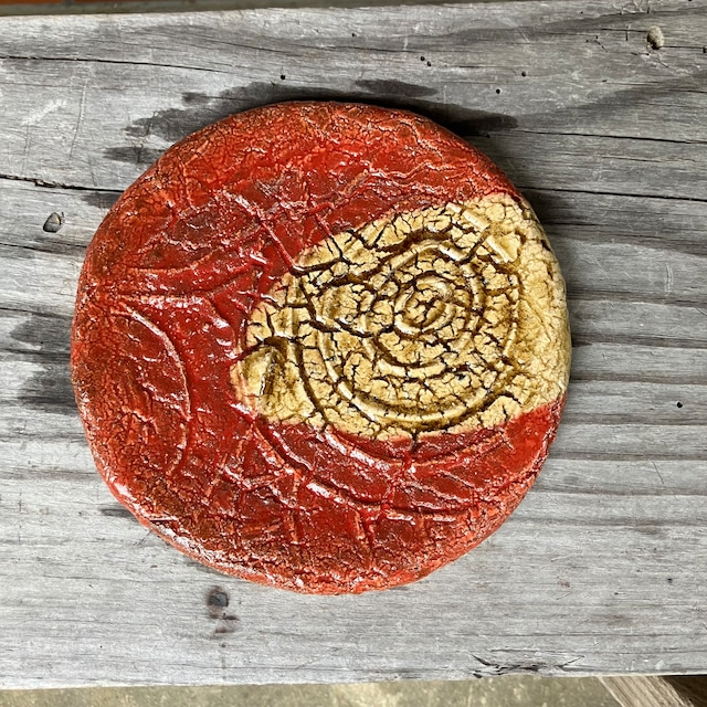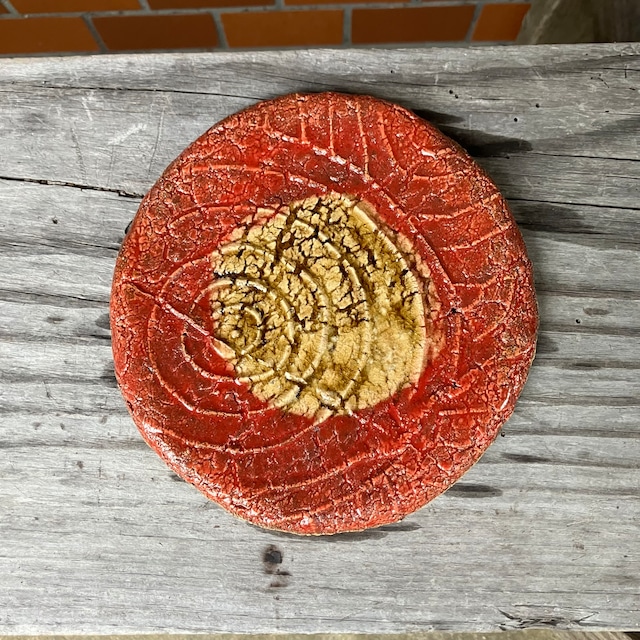 赤釉・罅紋様丸皿