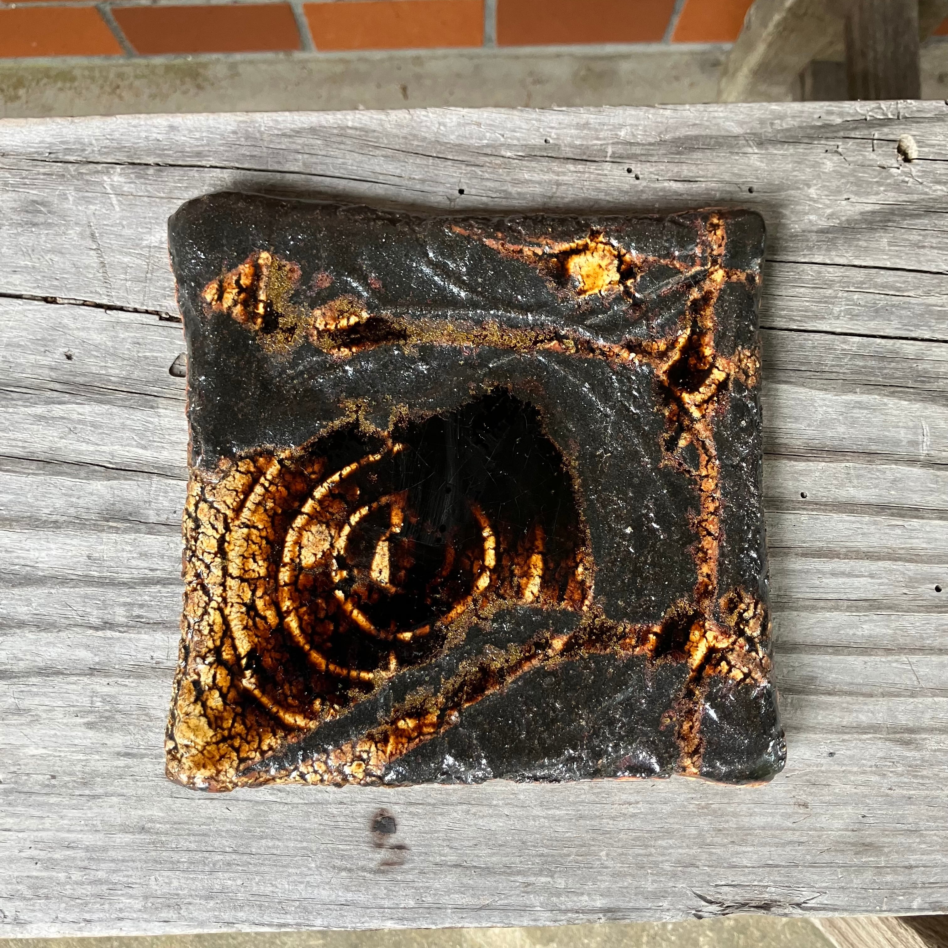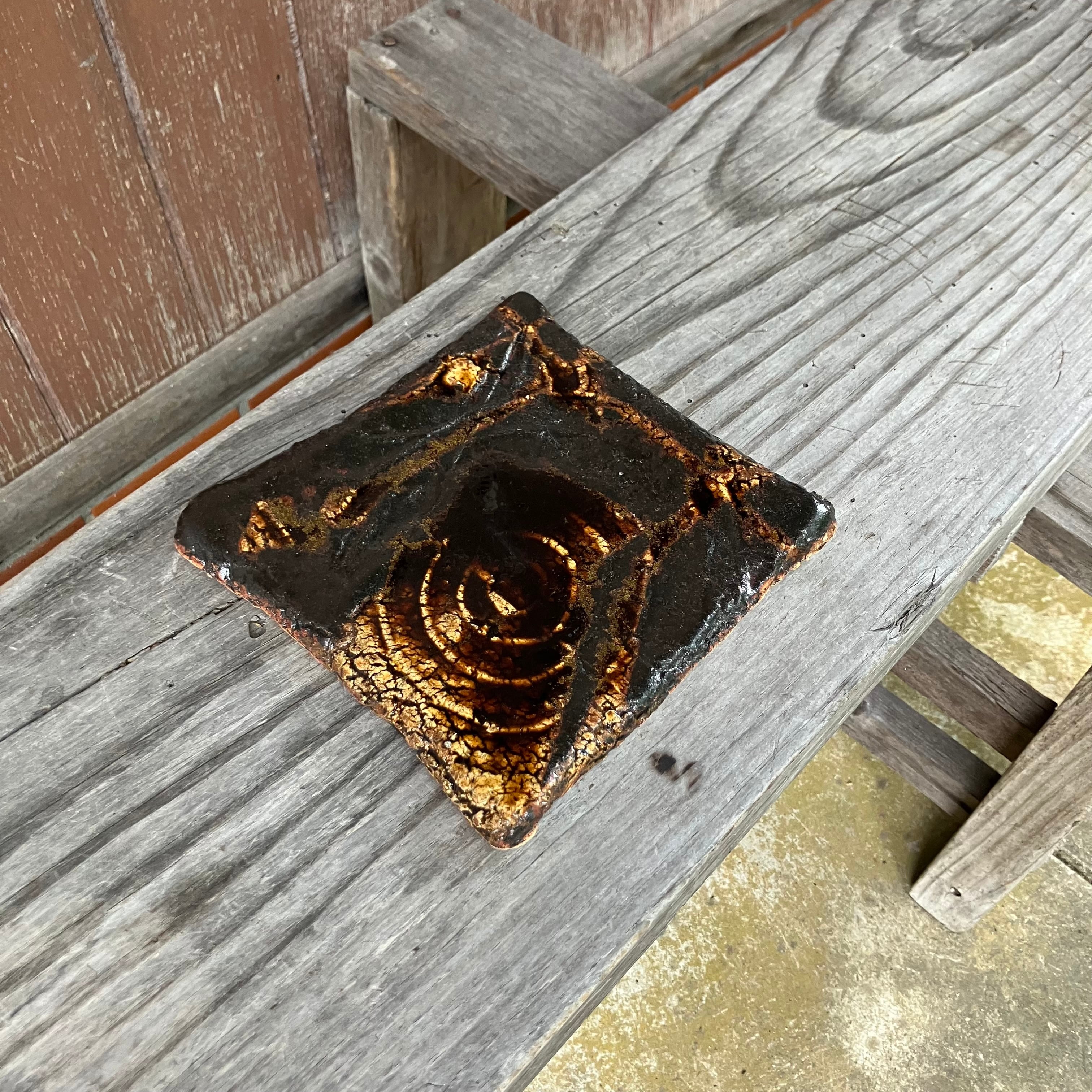 黒釉・罅紋様角皿