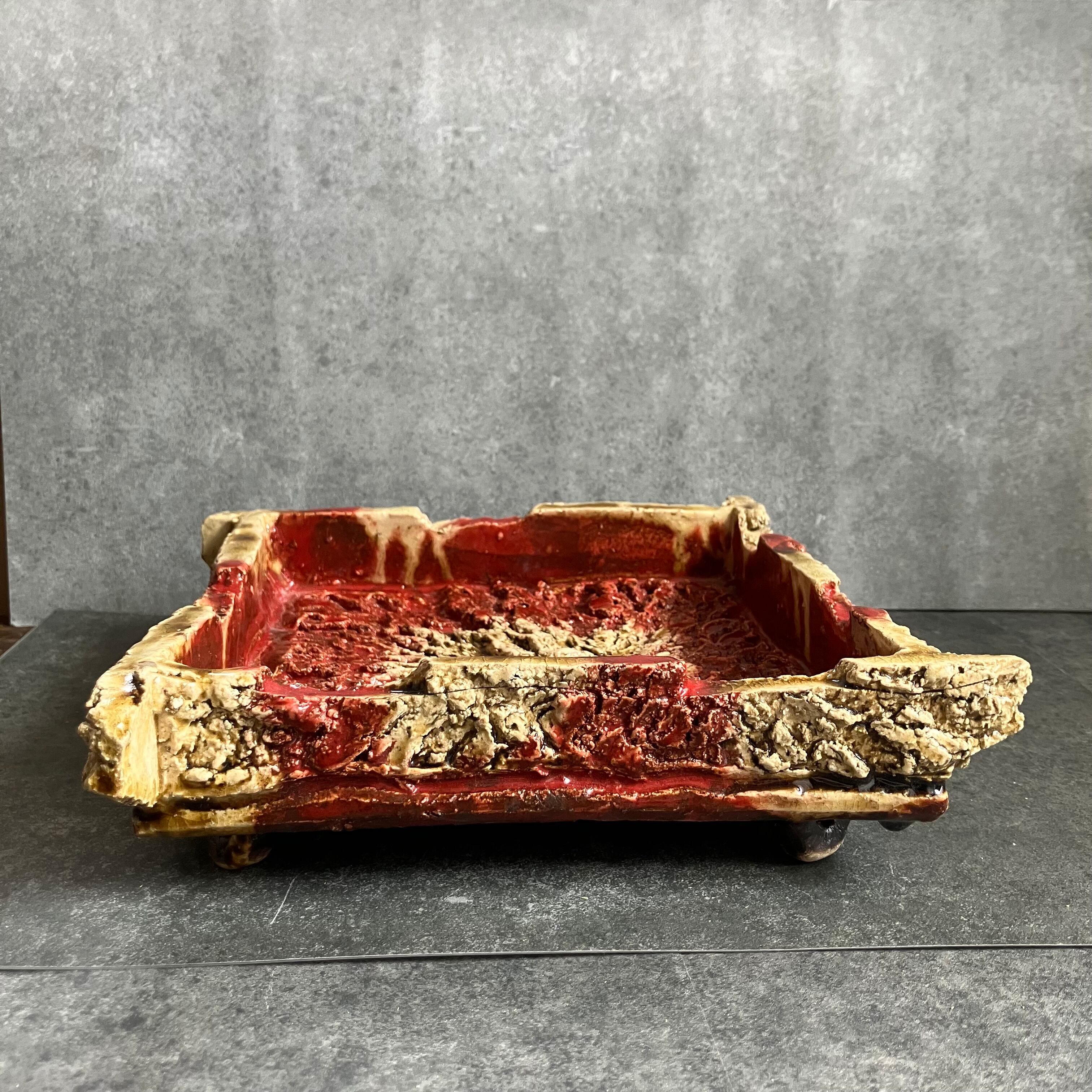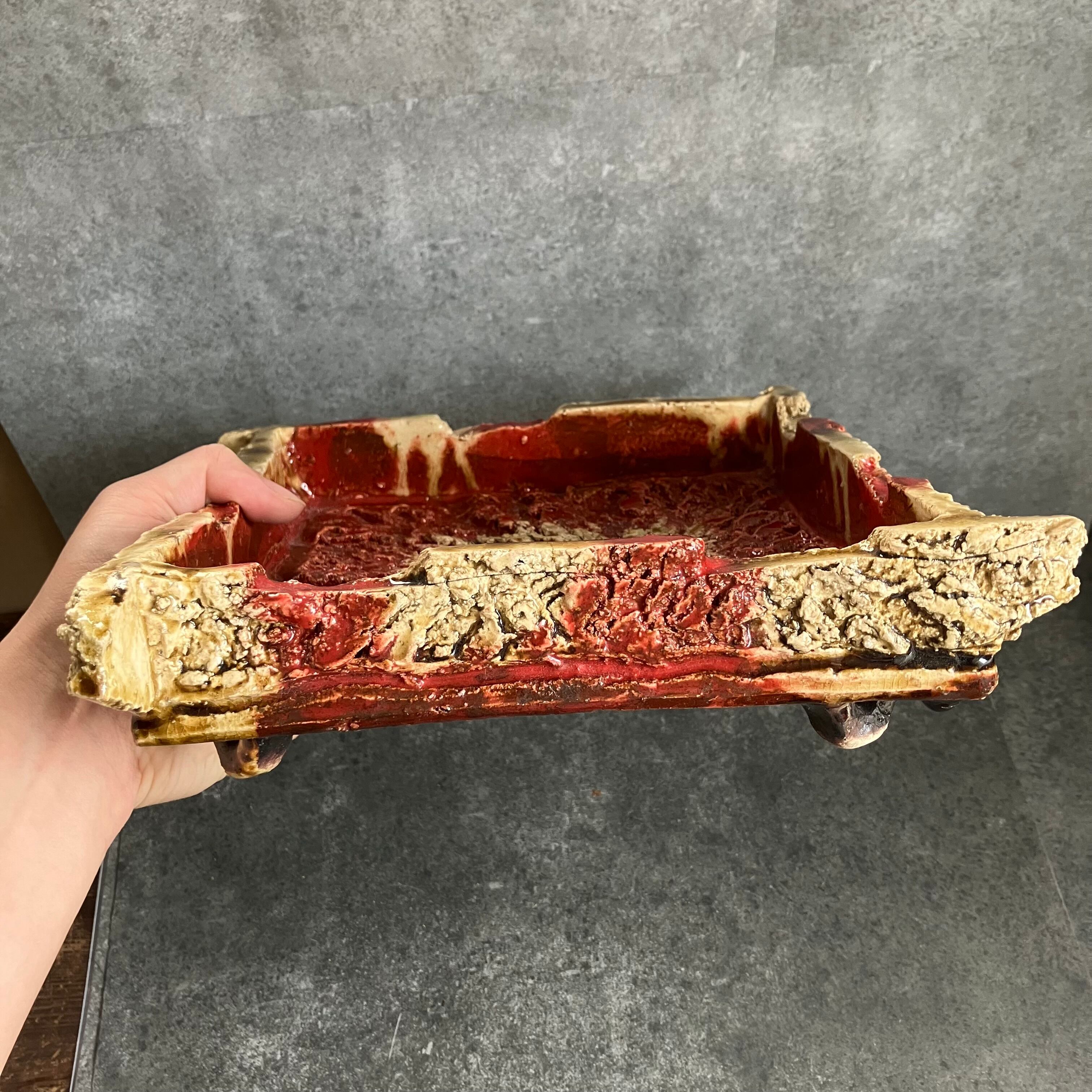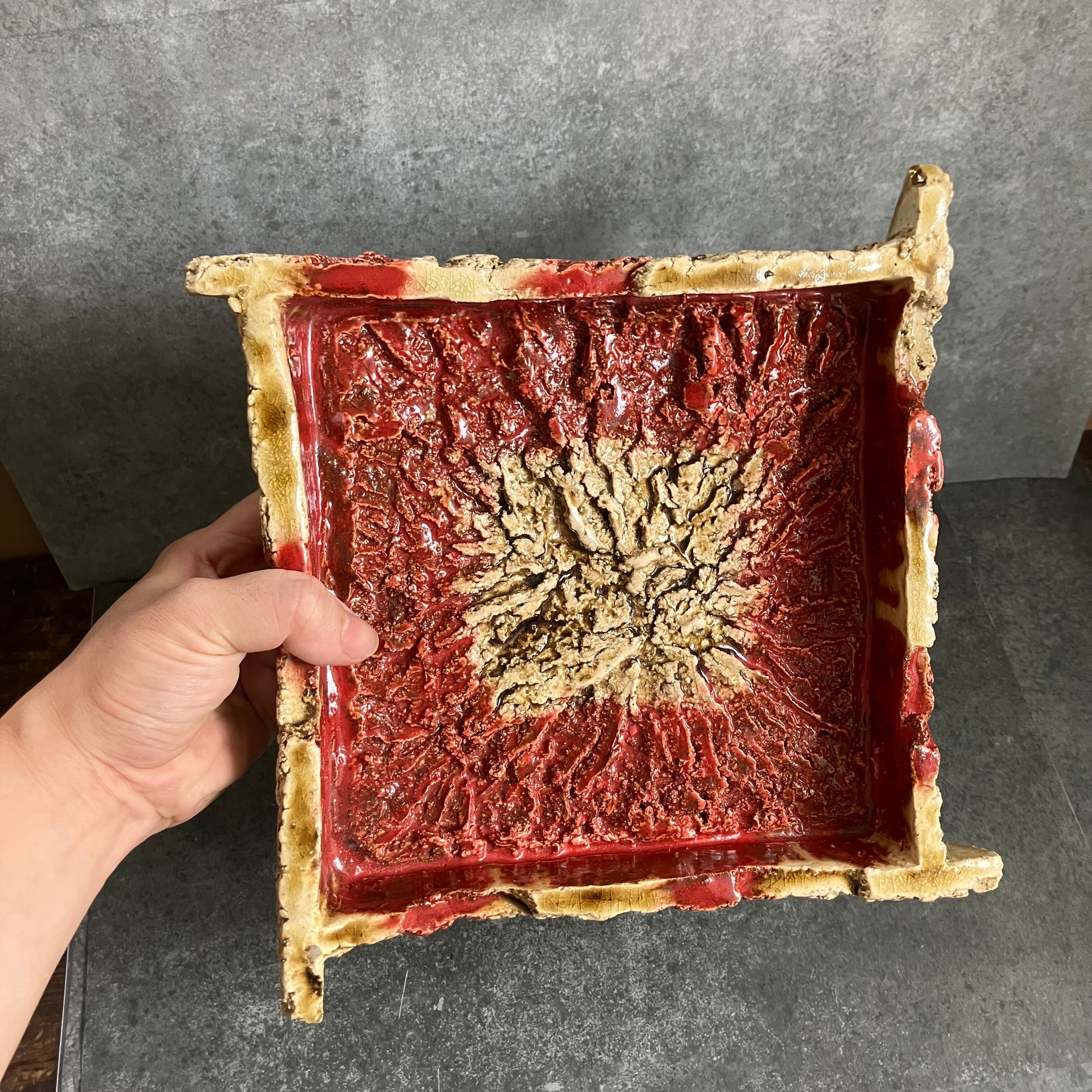 赤釉・脚付至宝鉢【大】【B】
