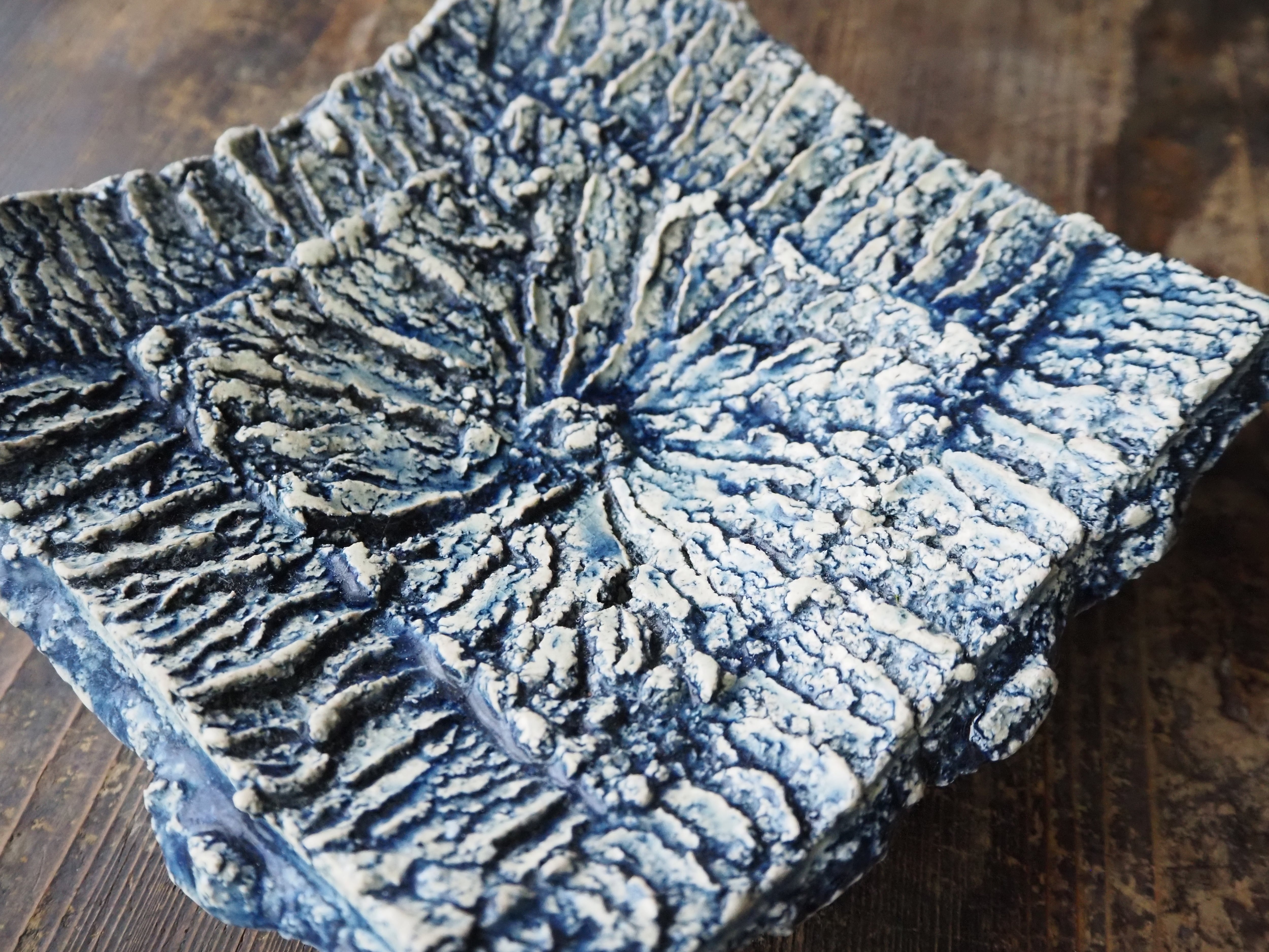 蒼釉・足付角皿