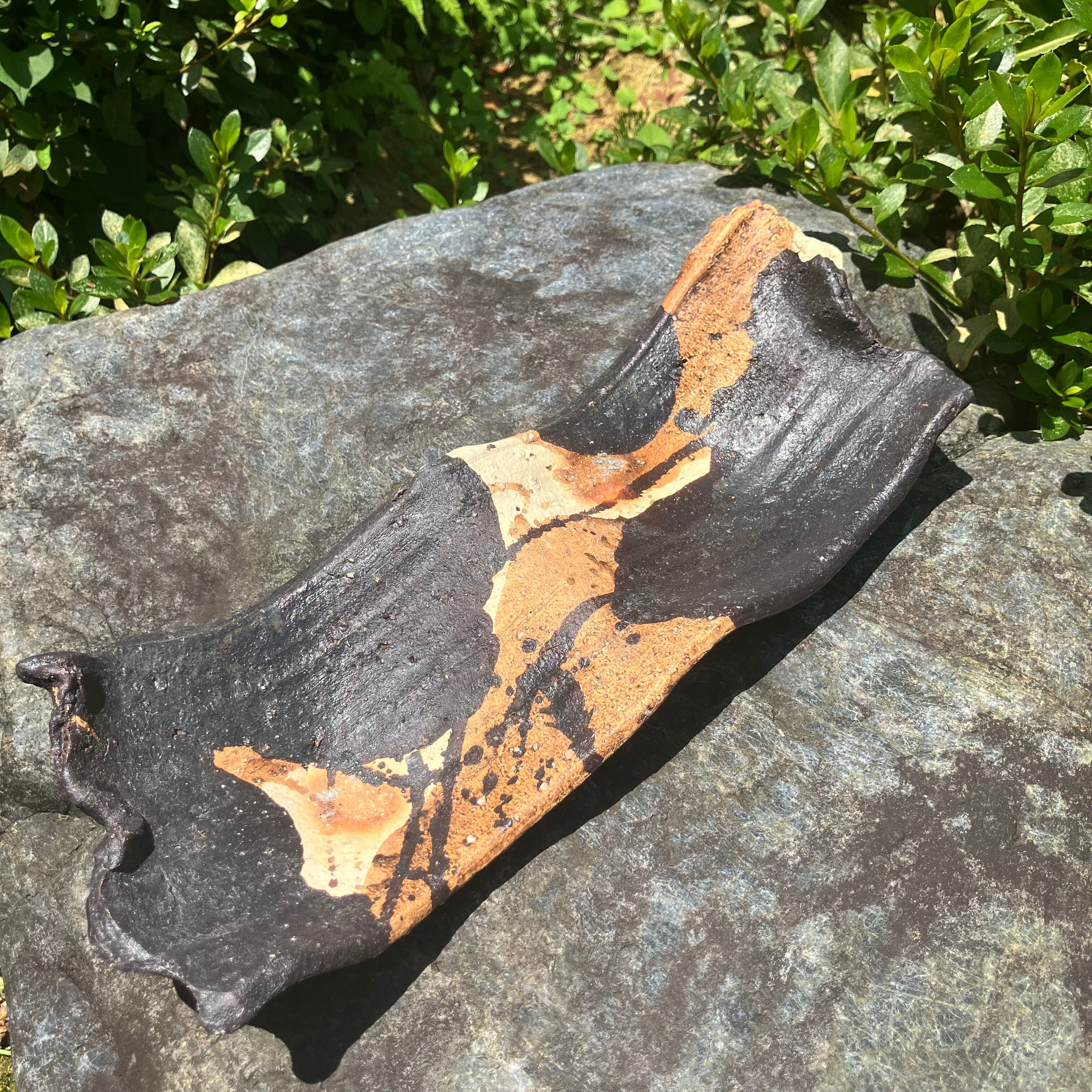 黒釉長皿・龍の背中