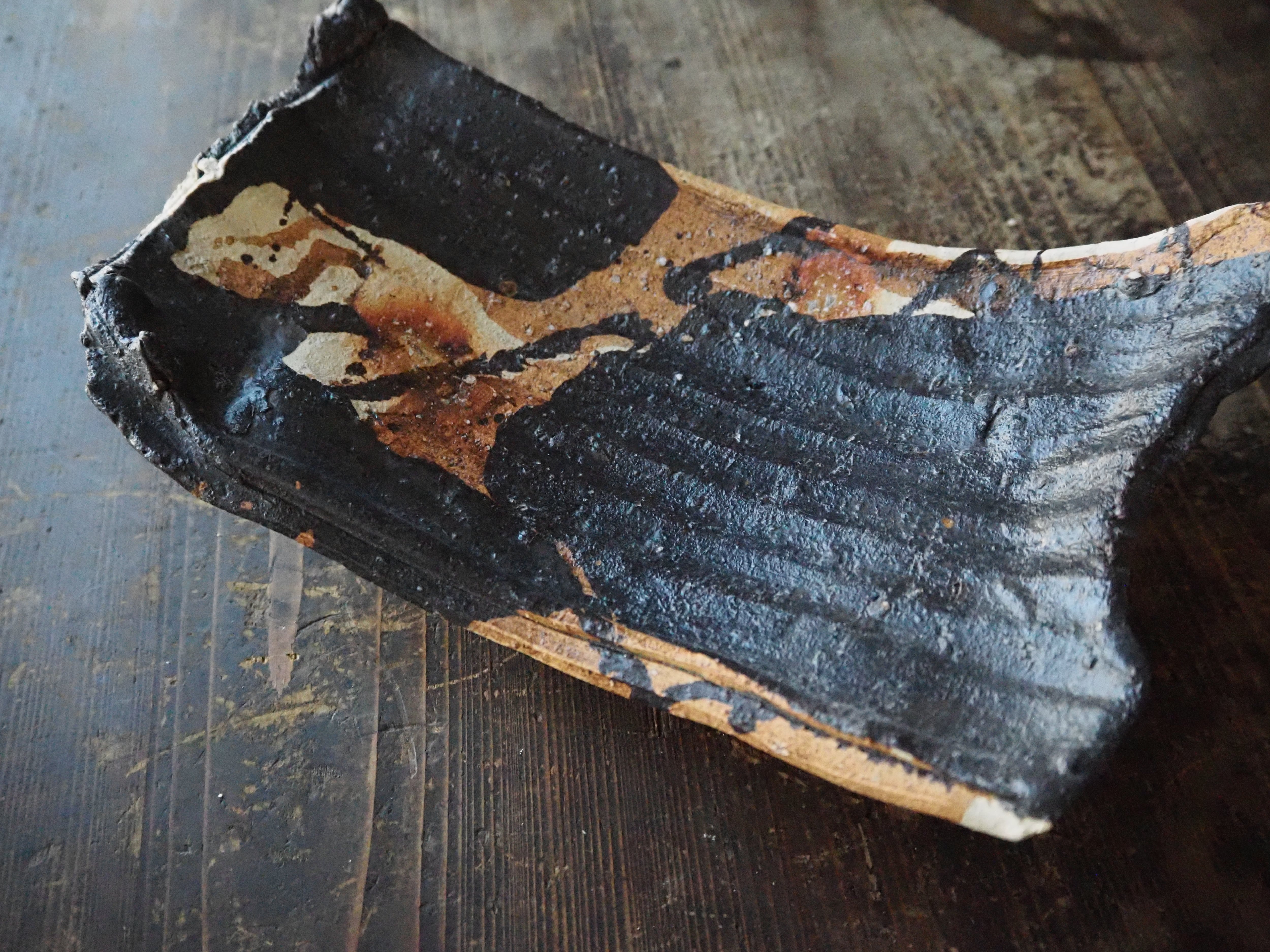 黒釉・変形長皿